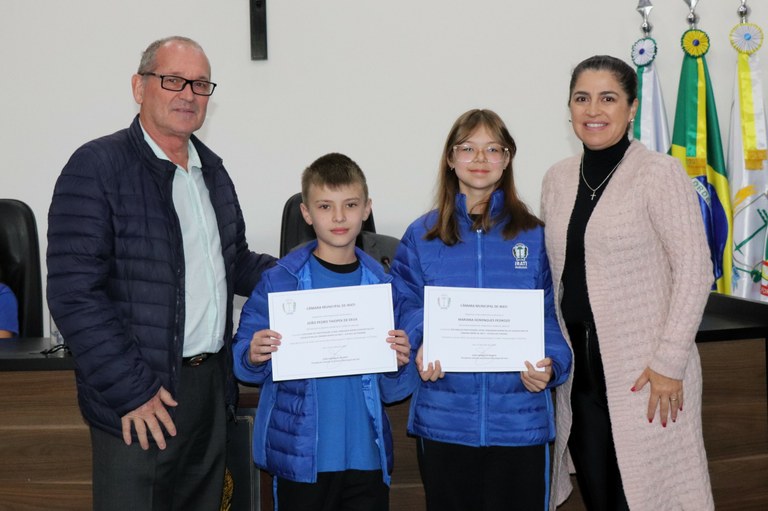 Marilisa Konopka, do Setor de Coordenação Pedagógica da Secretaria Municipal de Educação, e Igor Andreassa, chefe de gabinete e representante do Executivo Municipal na solenidade, parabenizaram os mirins e desejaram sucesso e sabedoria nesta legislatura.