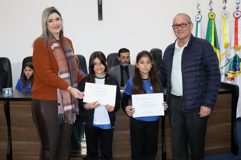 O Presidente da Câmara ressaltou a importância do projeto que está em sua 12ª Legislatura. “A Câmara Mirim promove a interação entre a Câmara de Vereadores e a comunidade, especialmente no âmbito escolar, proporcionando aos participantes conhecimento sobre o papel e as funções da Câmara e dos vereadores”, explicou.